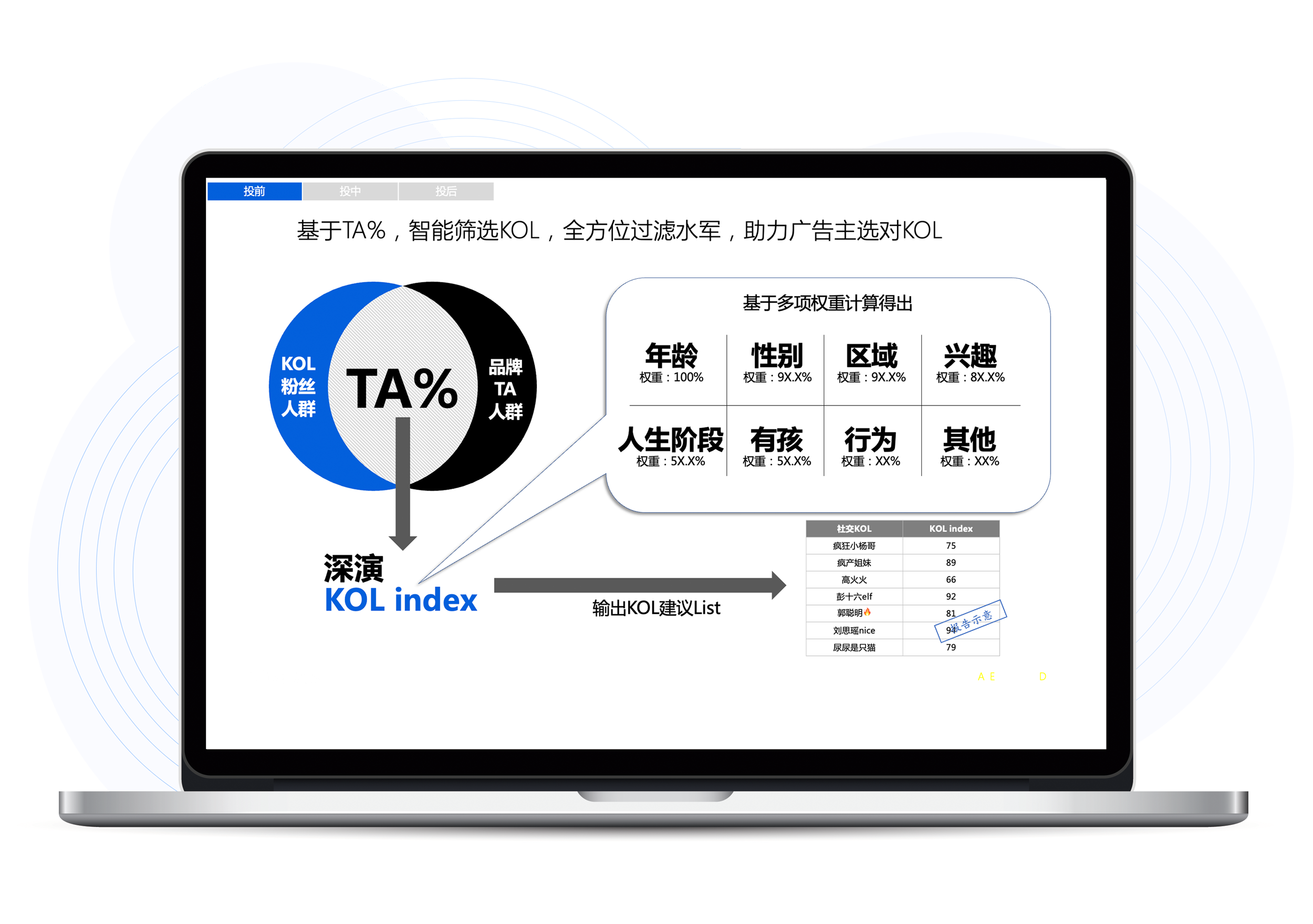 OG视讯K参谋科学前选可以跨领域找到最能影响品牌目标人群的KOL进行投放,同时有效平衡投资回报率